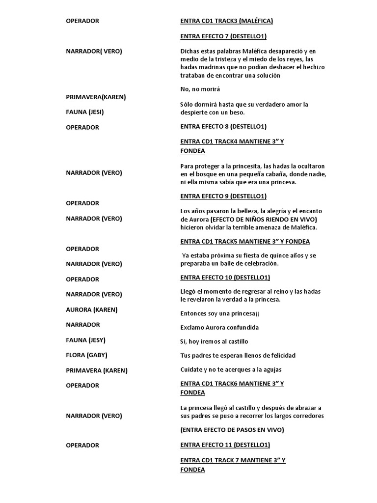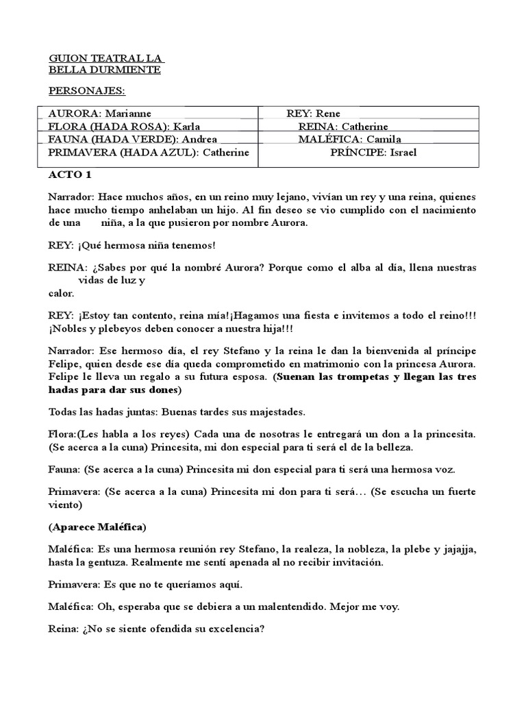 Guion De Teatro De La Bella Durmiente