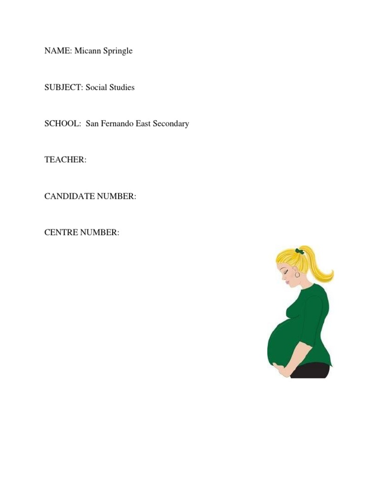My point is that an increase in good parenting practices and an expansion of sex education in public schools can be effective preventative measures to reduce instances of teenage pregnancy. SOCIAL SUDIES SCHOOL BASED ASSESSMENT SBA 2013 CANDIDATE NAME. The term in everyday speech usually refers to girls who have not reached legal adulthood which varies across the world who become pregnant.